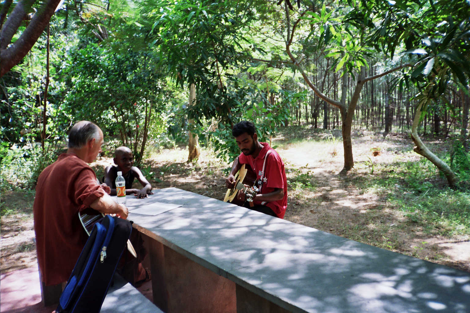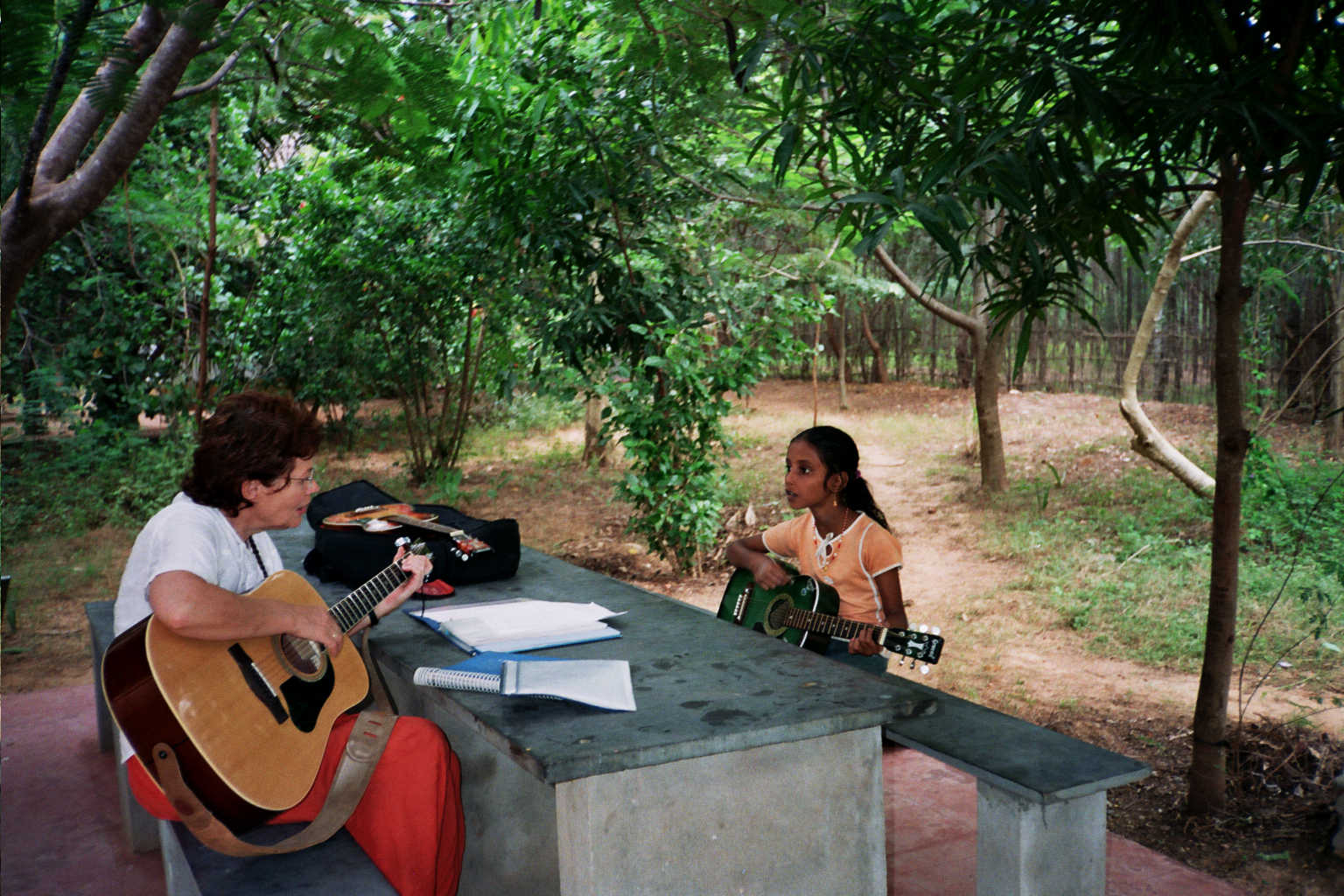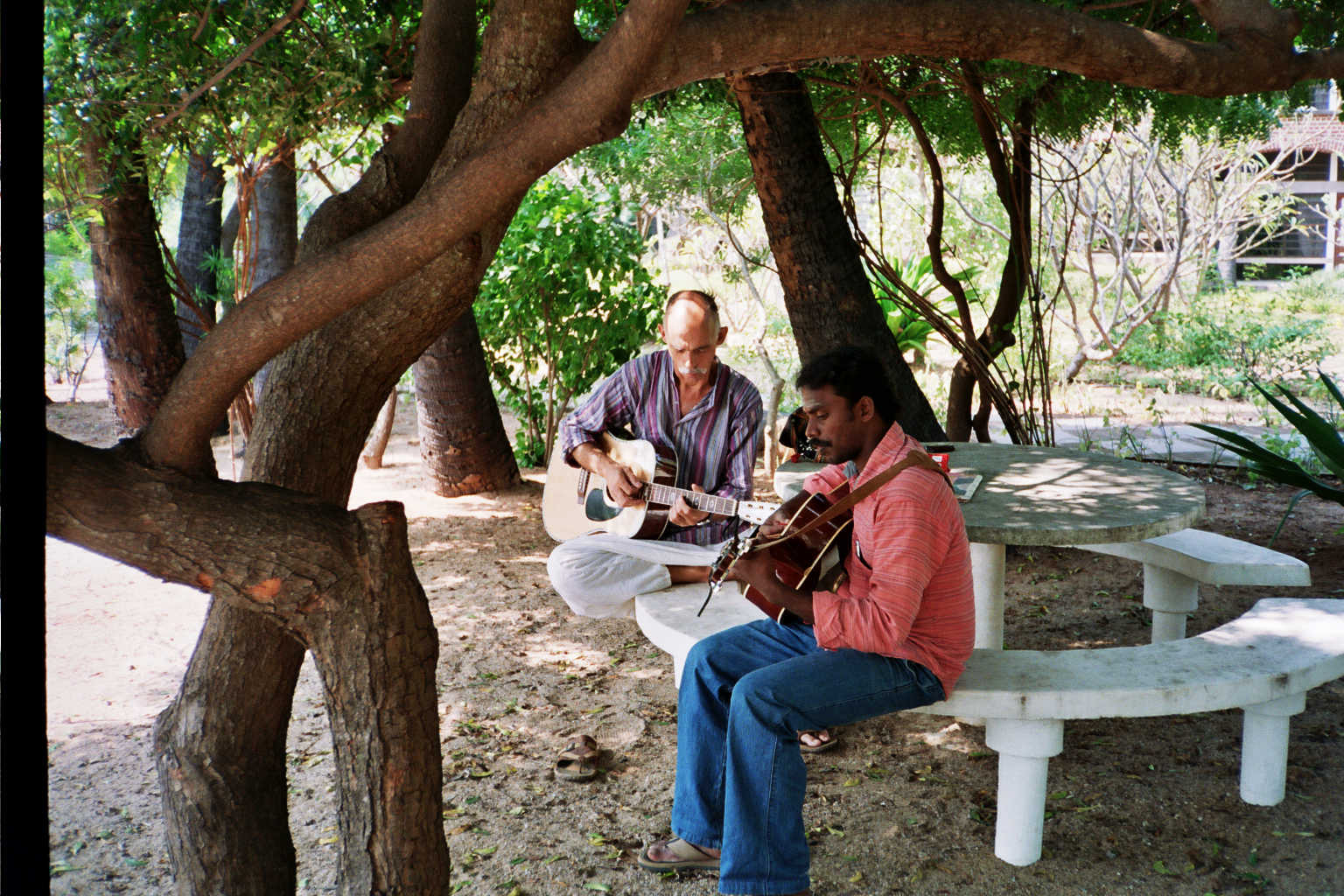 Halverwege 2007 ontvangen we (Dick en Marion) bij De Gitaarpraktijk een E-mail van de Stichting Isai Ma(i)yam met de vraag of we vrijwilligerswerk (in de vorm van gitaarles) willen gaan doen in India. De gitaarlessen moeten gegeven worden aan kansarme kasteloze kinderen, vier talentvolle jongens van gemiddeld 23 jaar en twee/drie dagen per week aan gehandicapte kinderen. Dit laatste betreft dan meer muziektherapie.
