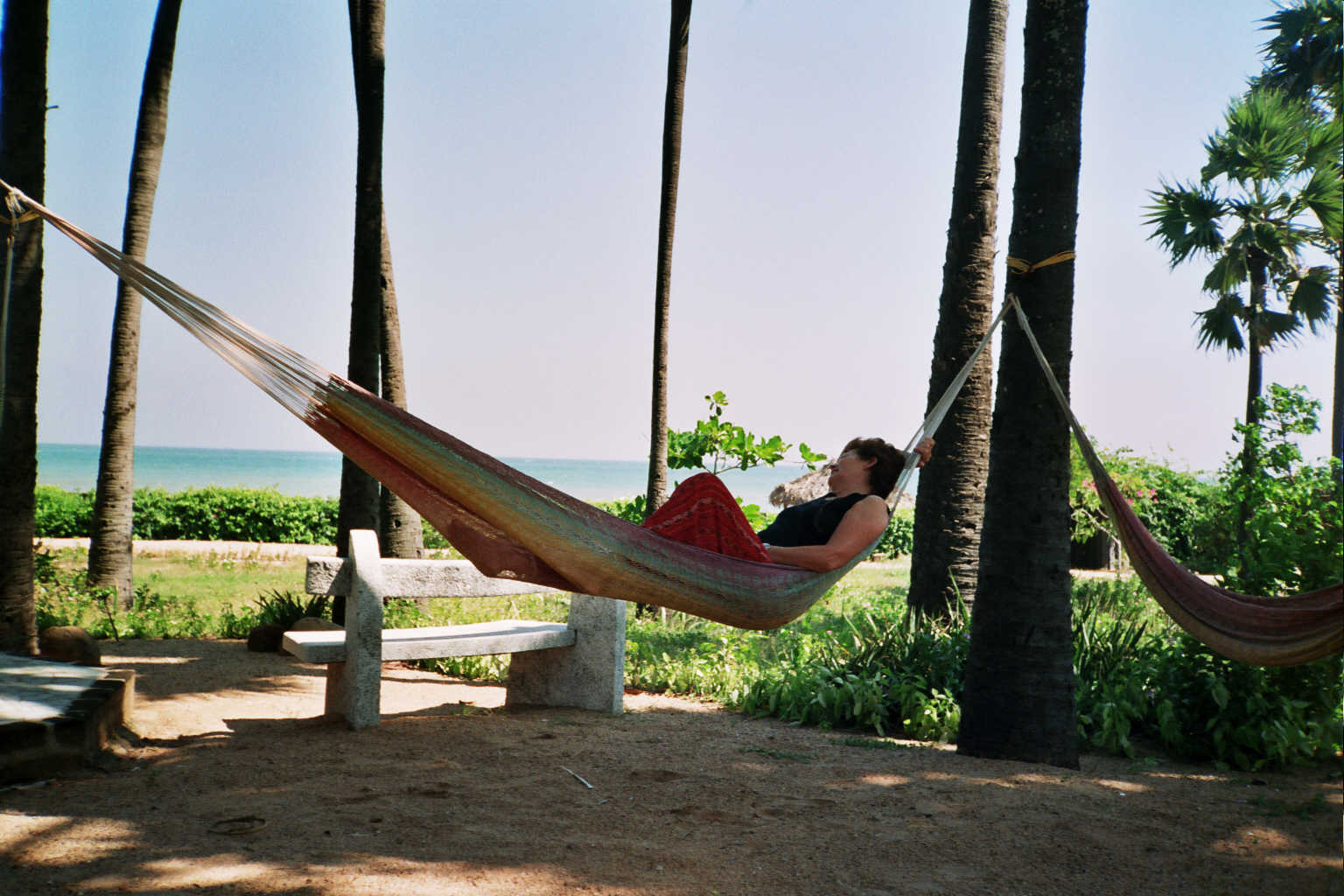 De vier jongens komen daar in de ochtend voor les en wanneer Dick les aan het geven is ligt Marion even heerlijk in een van de hangmatten FOTO bij het informatiecentrum.