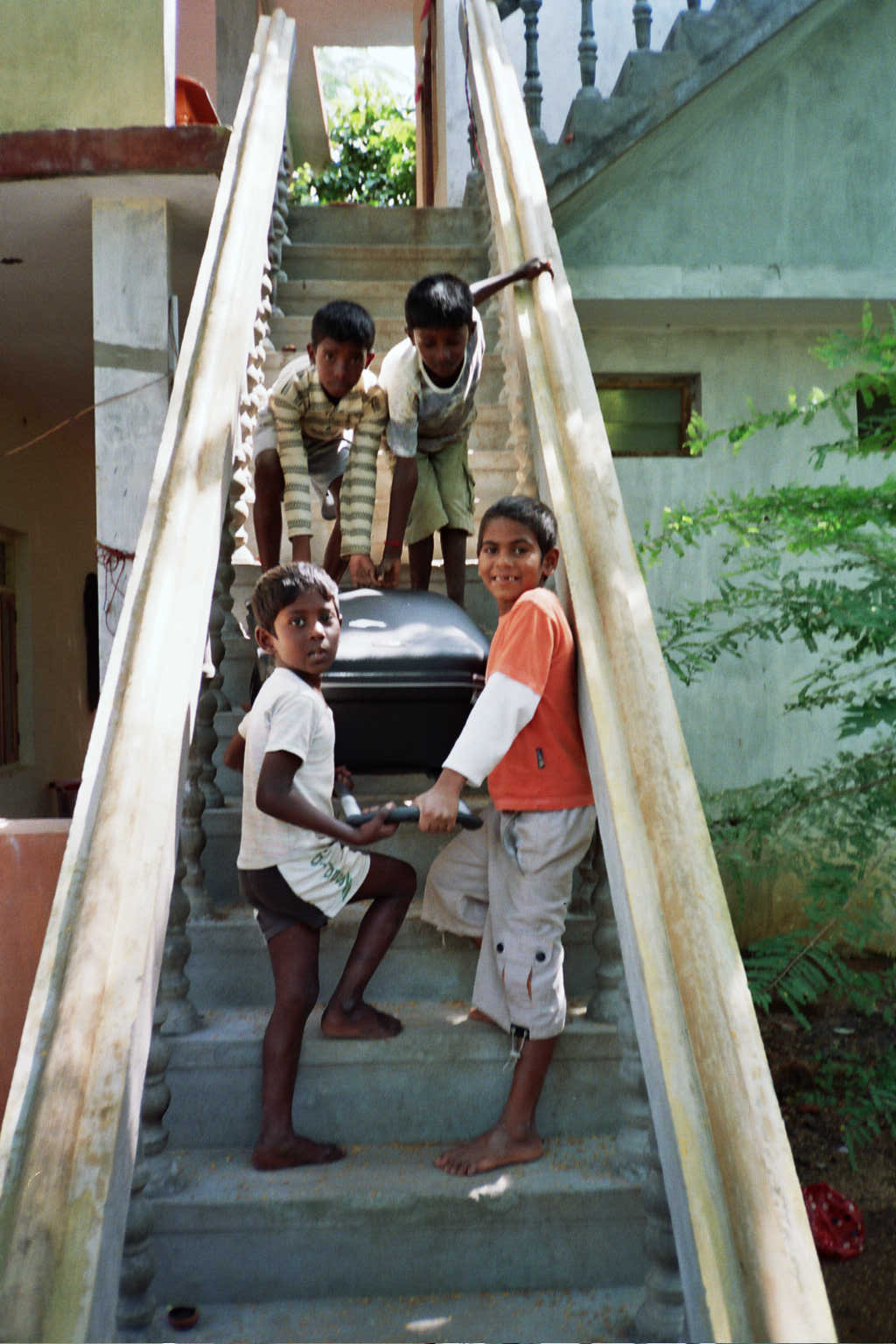 Wel hebben we allebei een heerlijke Ayurvedische massage genomen van iemand van buiten het Centre. Na vier dagen zijn we weer teruggegaan naar Herbal Garden waar de kinderen ons opwachten en de koffer naar boven willen dragen. FOTO