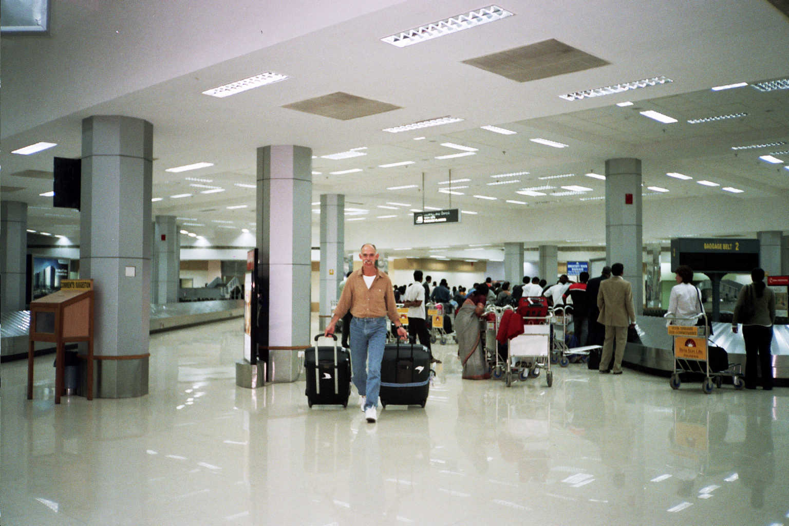 Eindelijk – de nacht van 1 op 2 november - is het dan zover, koffers gepakt, gitaren over de schouder en om 5 uur in de ochtend vertrekken we naar Schiphol. Van Schiphol gaan we met Britisch Airways naar Londen, daar moeten we 2 uur wachten FOTO en dan de grote oversteek naar India. De verzorging van Britisch Airways is perfect. Zo hebben we bijvoorbeeld totaal geen problemen met de twee gitaren die als handbagage meegaan . Na ongeveer 10 uren vliegen, 3 maaltijden, diverse drankjes en veel video’s bekeken te hebben komen we eindelijk aan op het vliegveld van Chennai.